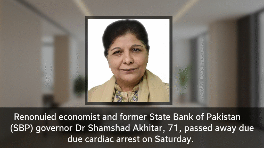 Pakistan has lost a respected and senior economist as former Governor of the State Bank of Pakistan, Dr. Shamshad Akhtar, has passed away. Her death has caused deep sorrow in financial, banking, and business circles across the country.